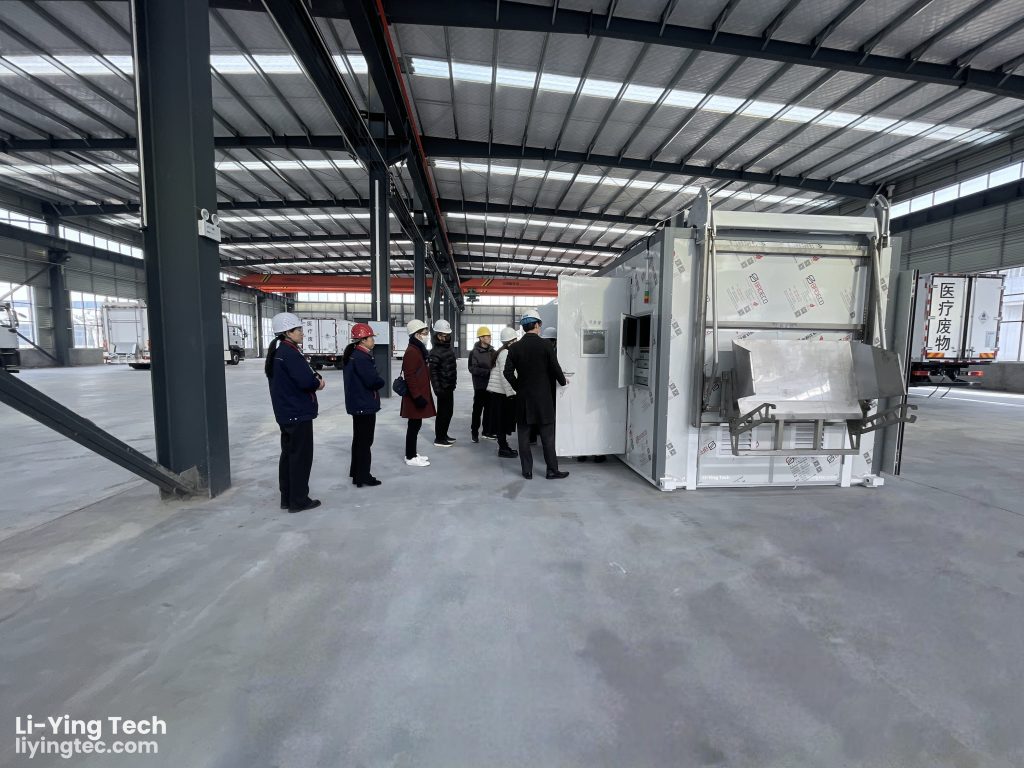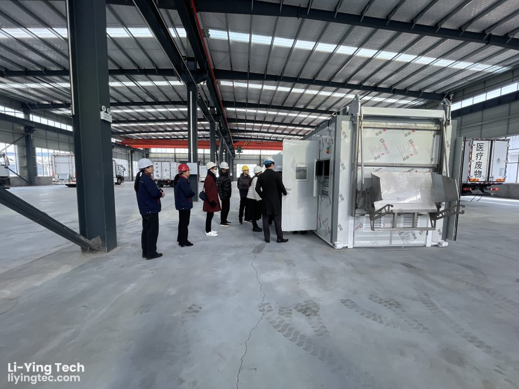 Li-Ying CEO Zhongkui Zhang along with several executives, warmly greeted these special guests. Together, we toured our production workshop, medical waste disposal center, and showcased our innovative medical waste solutions and intelligent management platform.